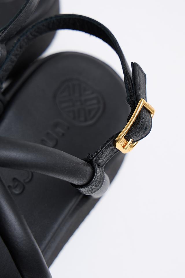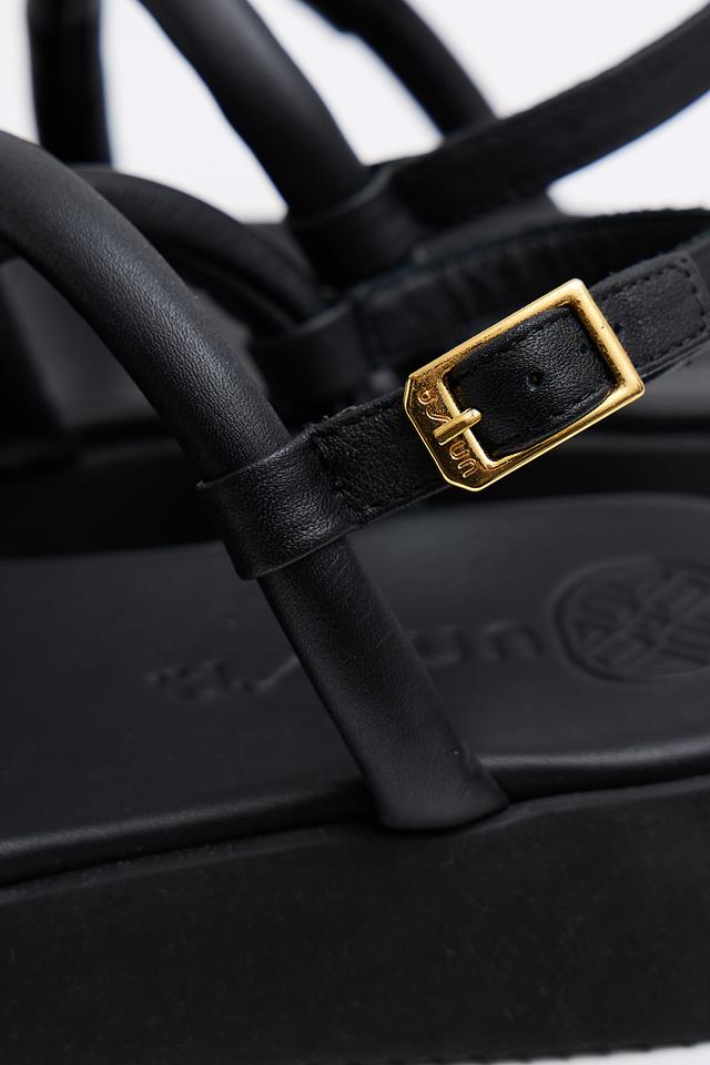 Дизайн сандалий отличается широкими перемычками, которые надёжно фиксируют стопу. Платформа добавляет высоты и обеспечивает дополнительный комфорт. Золотистые пряжки на ремешках придают обуви изысканность и элегантность. Логотип бренда Unisa размещен на стельке и на внешней стороне ремешка.