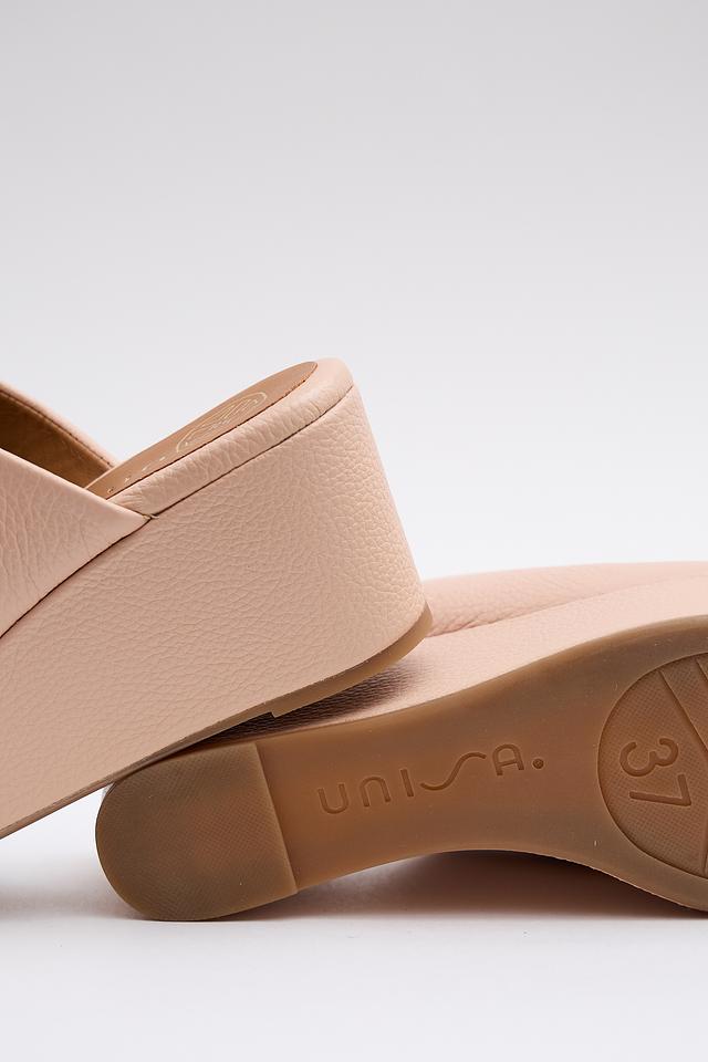 Платформа и каблук выполнены из термополиуретана, что обеспечивает легкость и устойчивость. Открытый носок и удобная конструкция делают эти шлепанцы идеальными для жаркой погоды. Логотип бренда Unisa размещен на стельке, подчеркивая качество и стиль обуви.