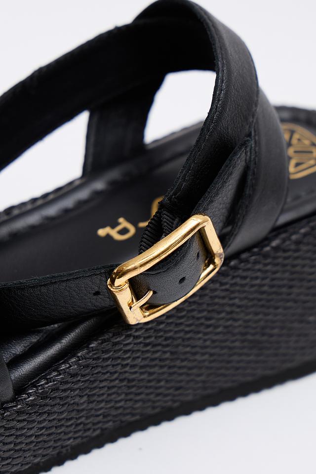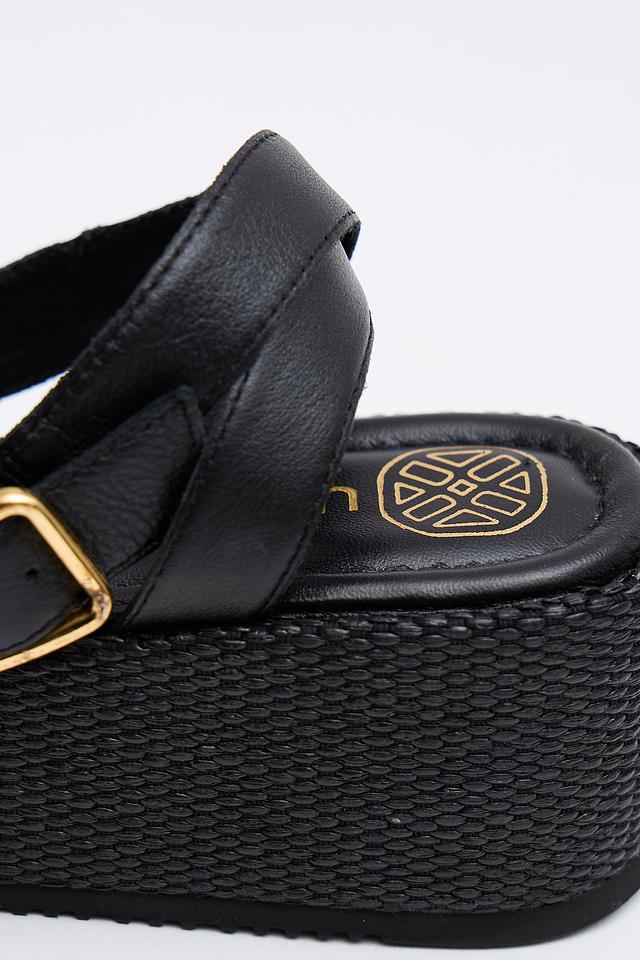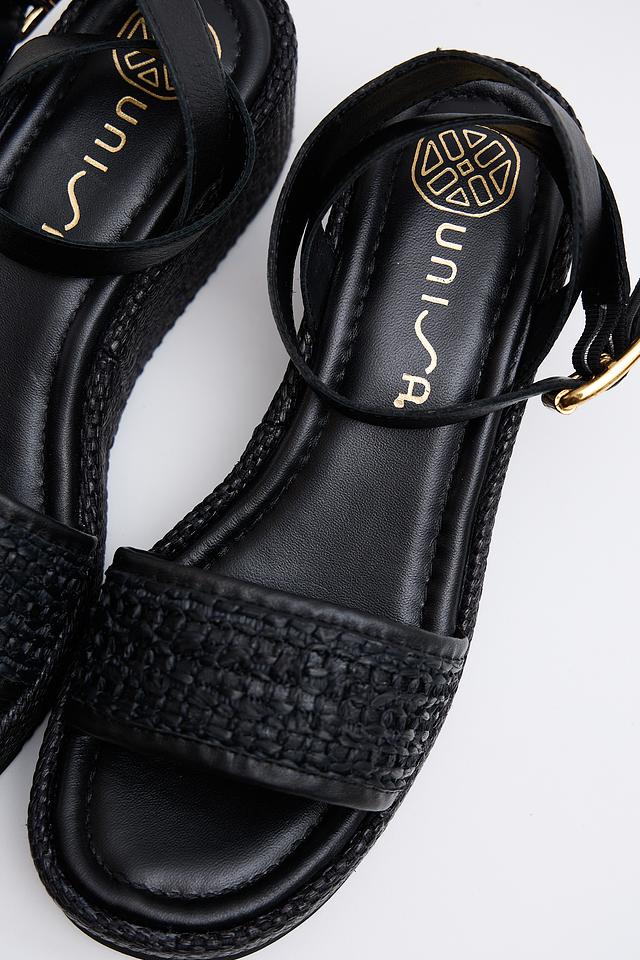 Чёрные сандалии Unisa на платформе и ремешке с золотой пряжкой – стильное и удобное решение для летнего гардероба. Модель выполнена из качественной кожи и текстиля, обеспечивая комфорт при носке. Состав: Состав_подкладка кожа 100%, Состав_низ термополиуретан 100%, кожа 70%, вискоза 23%, полиэстер 7%