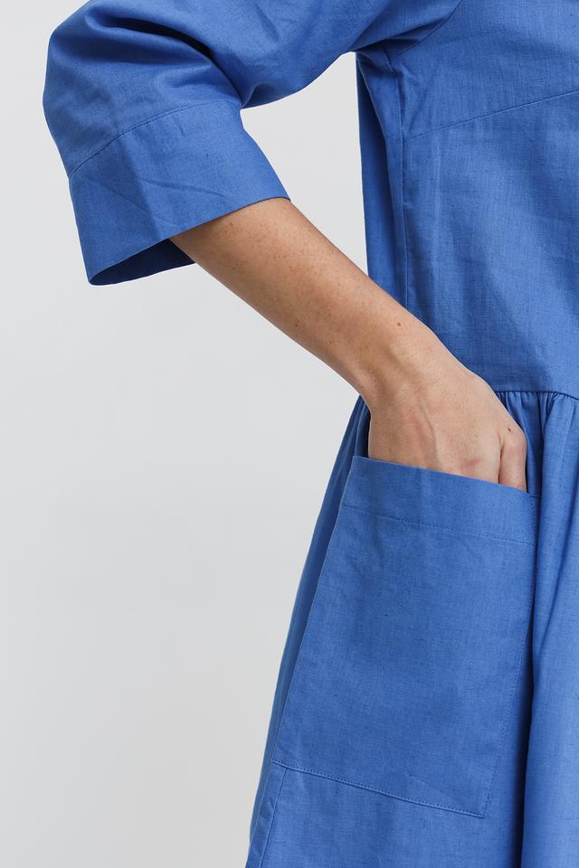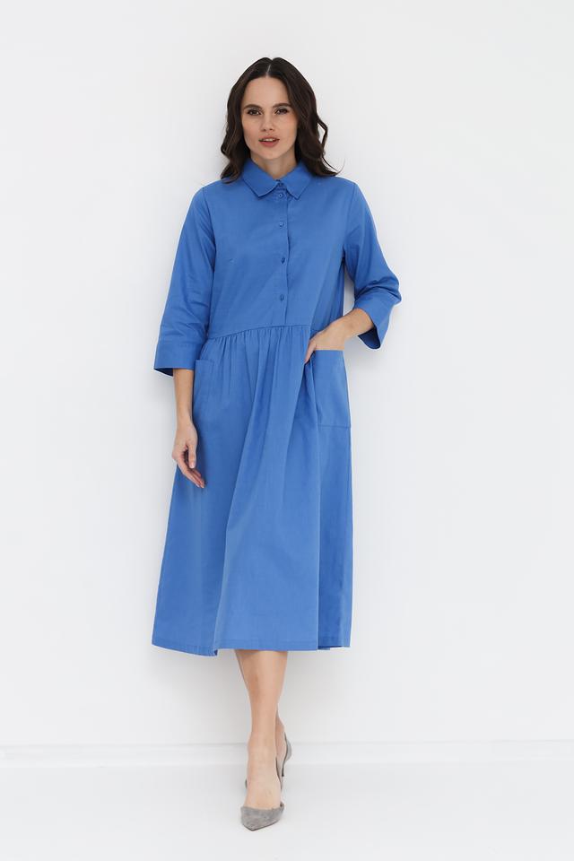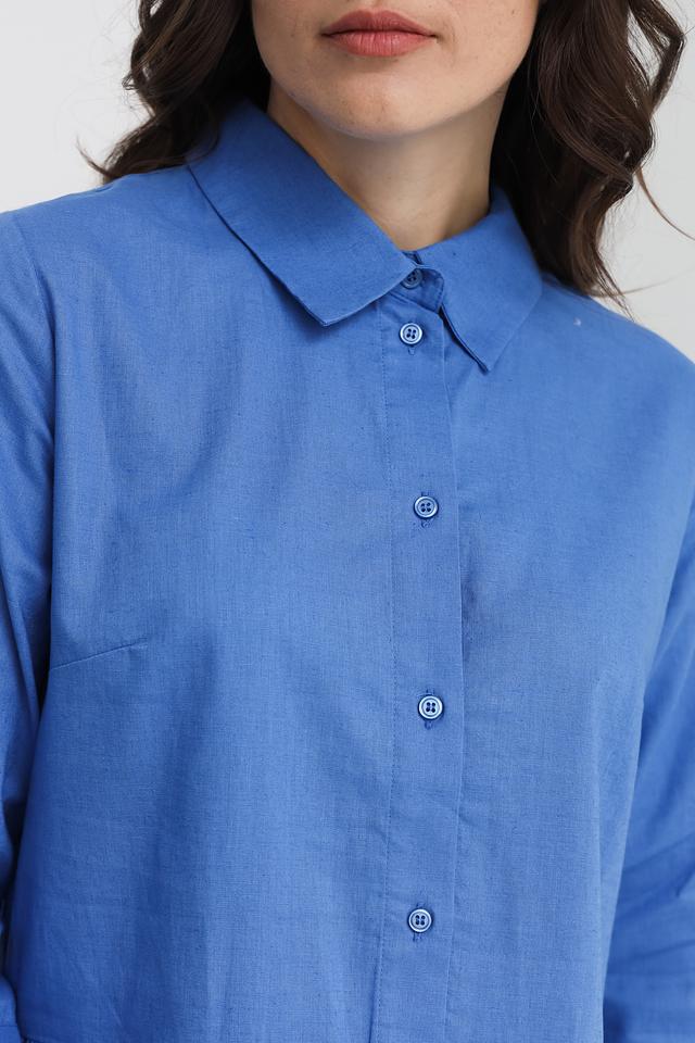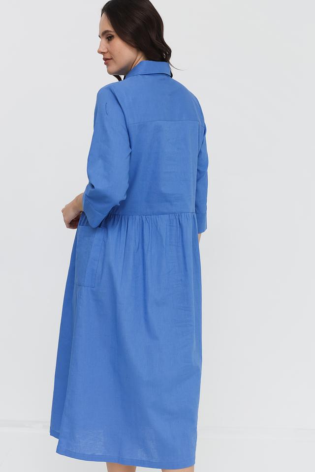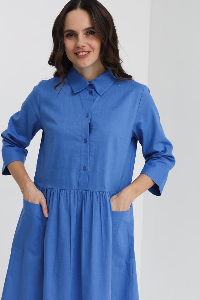 Голубое платье рубашка от UNQ – стильное и комфортное решение для повседневного образа. Платье выполнено из натурального смесового материала, имеет рубашечный крой с застежкой на пуговицы и боковые карманы. Состав: лен 55%, хлопок 45%