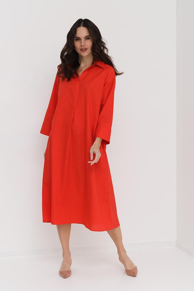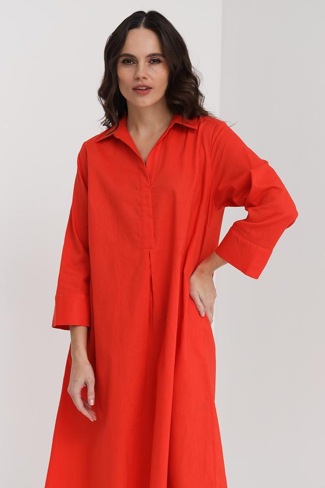 Алое платье рубашка от UNQ – стильное и комфортное решение для повседневного образа. Платье выполнено из натурального смесового материала, сочетающего лен и хлопок, что обеспечивает приятные тактильные ощущения и воздухопроницаемость. Состав: лен 55%, хлопок 45%