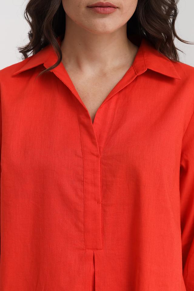Это платье рубашка от UNQ выполнено в ярком алом цвете и станет отличным дополнением к вашему гардеробу. Модель имеет прямой силуэт, воротник и застежку на пуговицах по всей длине.