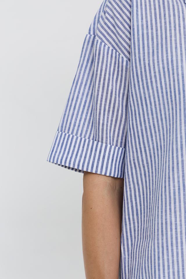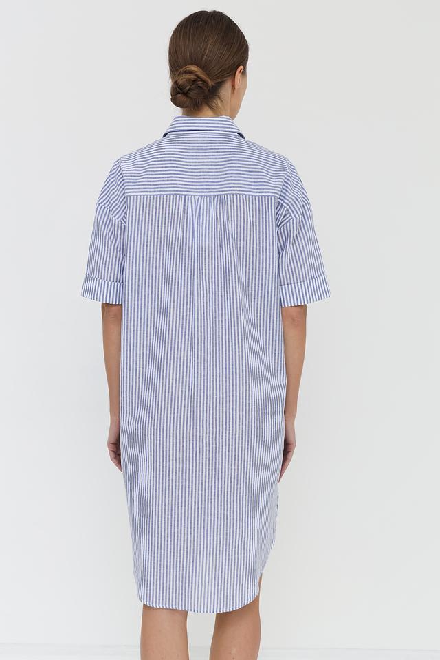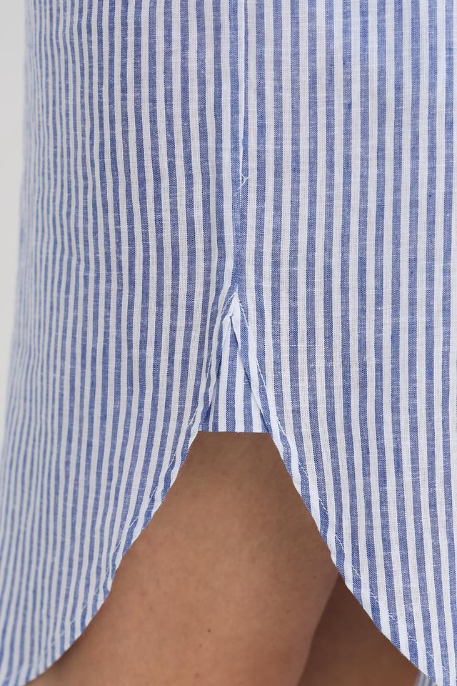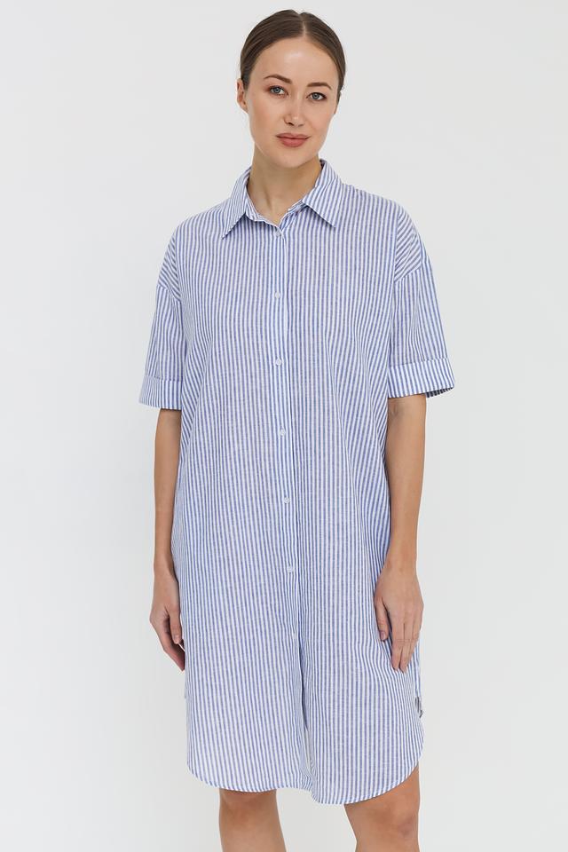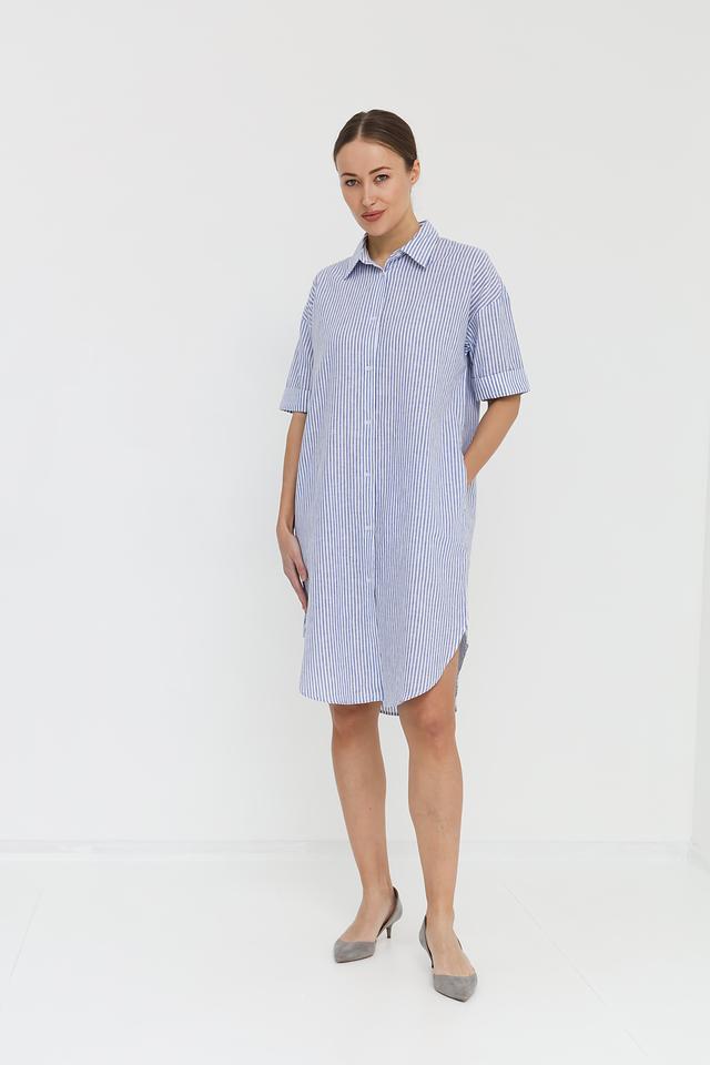 Платье-рубашка UNQ голубого цвета в классическую полоску – это стильное и комфортное решение для повседневного образа. Модель выполнена из натурального смесового материала, обеспечивающего приятные ощущения и воздухопроницаемость. Состав: лен 55%, хлопок 45%