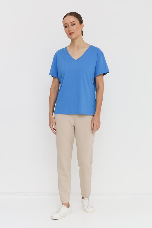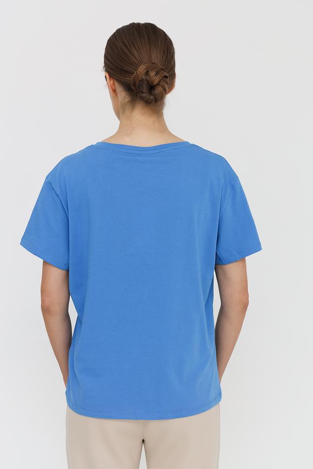 Благодаря своему лаконичному дизайну, эта футболка легко сочетается с джинсами, брюками, юбками и шортами. Она станет незаменимой вещью в вашем повседневном гардеробе. Универсальный голубой цвет легко комбинируется с другими цветами и аксессуарами.