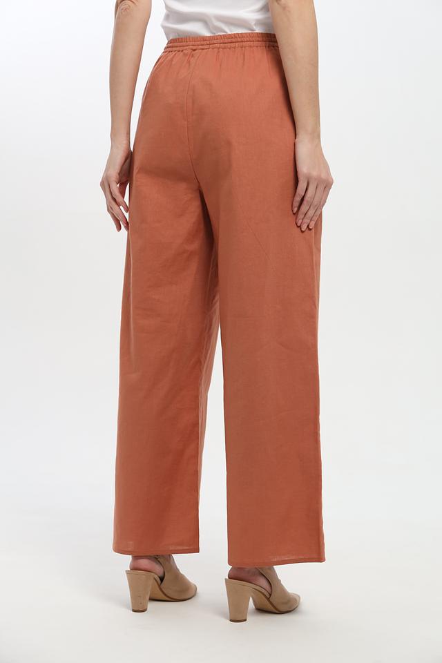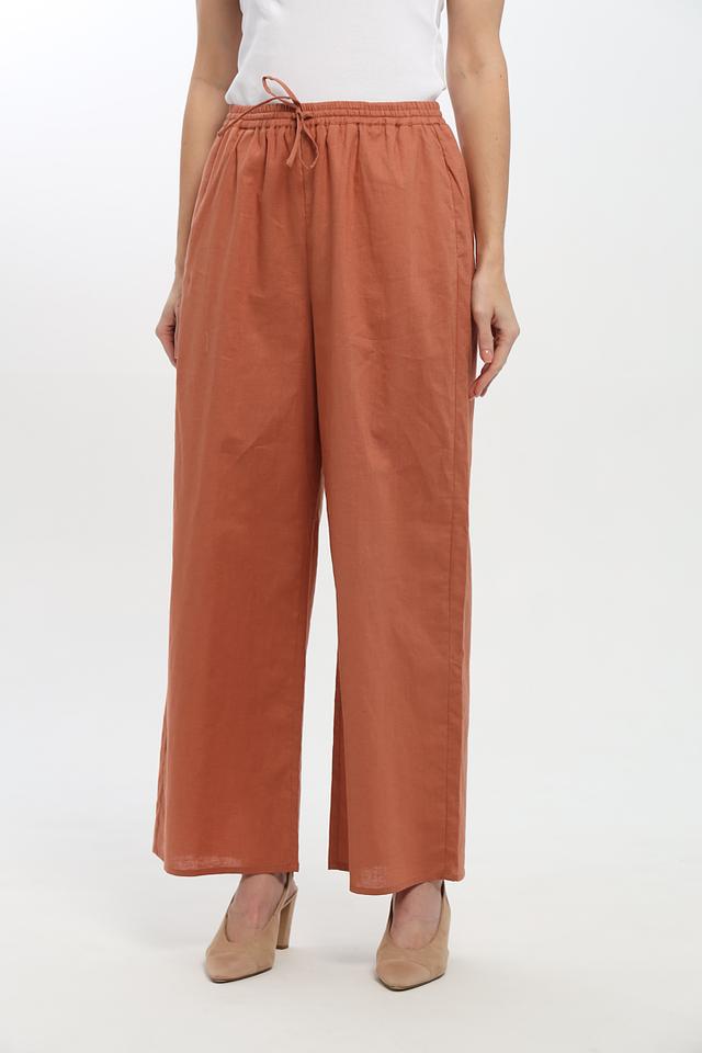 Женские брюки UNQ цвета терракоты – это стильное и комфортное решение для создания повседневных образов. Модель палаццо с эластичным поясом и завязками обеспечит свободу движений и удобную посадку. Состав: лен 55%, хлопок 45%