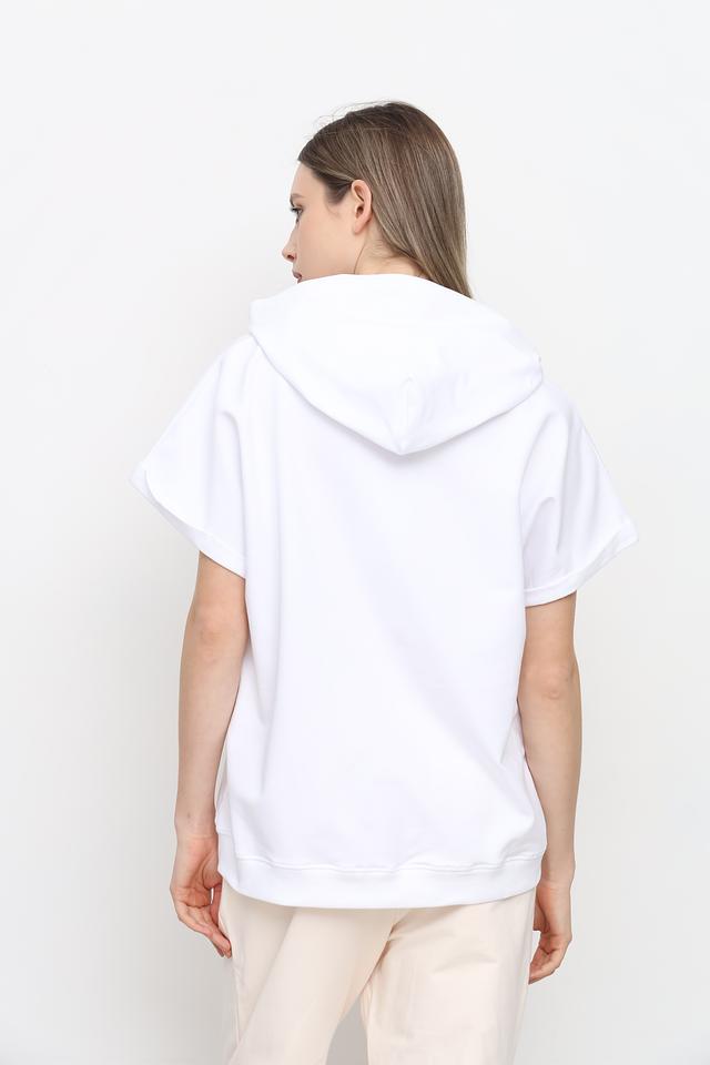 Толстовка имеет свободный крой, что обеспечивает комфорт при носке, а короткие рукава делают ее идеальным выбором для теплой погоды. Капюшон добавляет функциональности и позволяет создать более расслабленный образ.