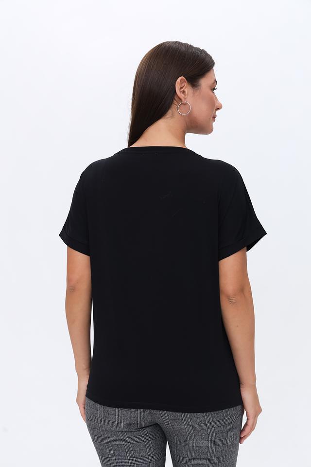 Модель имеет прямой крой, который обеспечивает комфортную посадку по фигуре. Короткие рукава и округлый вырез горловины делают футболку универсальной и подходящей для любого типа телосложения.