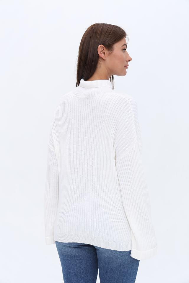 Белый пуловер от UNQ – это стильная и уютная модель с высоким горлом и рукавами-колоколами. Изготовлен из мягкой смеси шерсти и полиакрила, обеспечивающей комфорт и тепло. Состав: шерсть 50%, полиакрил 50%