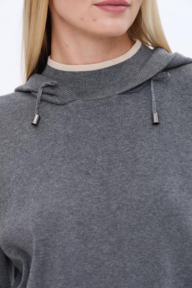 Серый пуловер от UNQ с капюшоном и логотипом на груди. Модель выполнена из мягкого трикотажа с добавлением вискозы, что обеспечивает комфорт и приятные ощущения при носке. Состав: вискоза 72%, полиэстер 28%