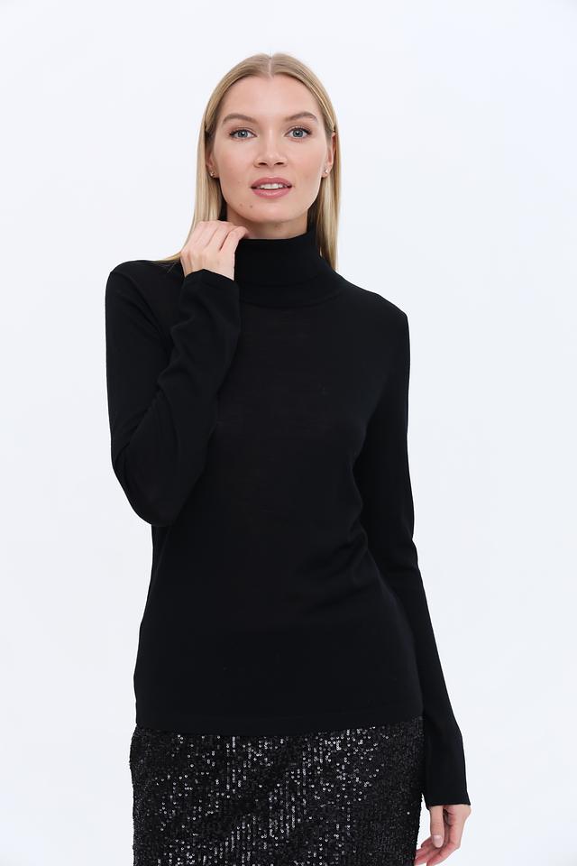 Чёрная водолазка UNQ из 100% шерсти — это элегантная и теплая база для любого гардероба. Классический крой и мягкая текстура обеспечивают комфорт и стиль в холодное время года. Состав: шерсть 100%