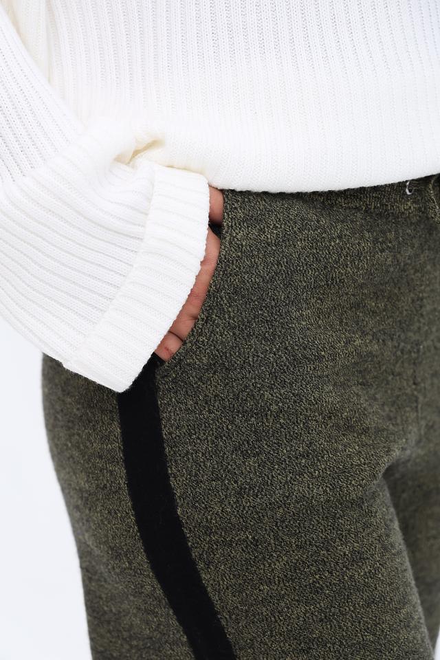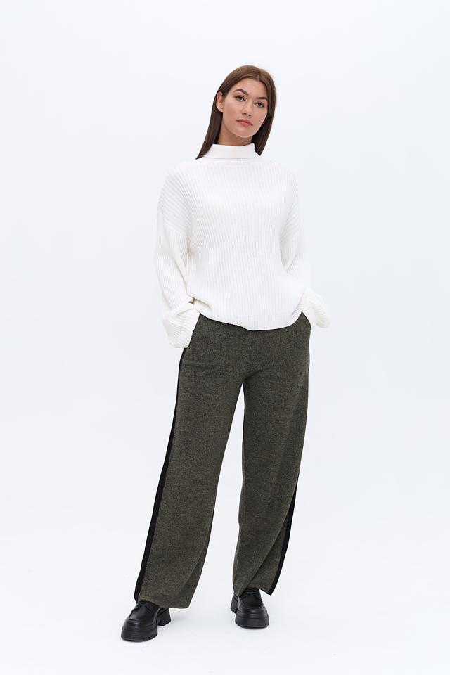 Брюки от UNQ хаки цвета — это стильное и комфортное решение для повседневного гардероба. Прямой крой и эластичный пояс с кулиской обеспечивают удобную посадку, а боковая черная вставка добавляет оригинальности. Состав: шерсть 100%