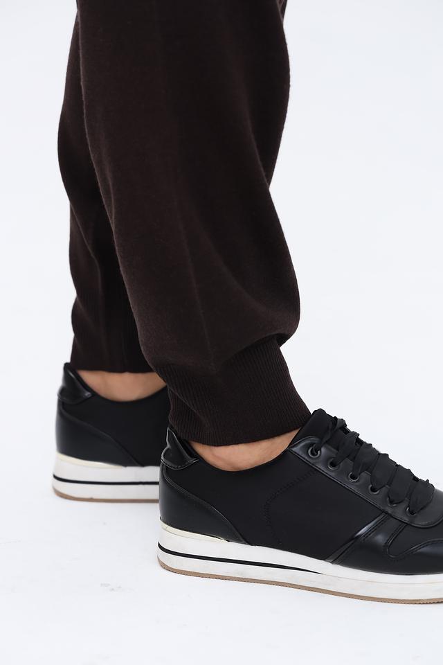 Чёрные спортивные брюки от UNQ — удобная и стильная модель с эластичным поясом и боковыми карманами. Идеальный выбор для активного образа жизни и повседневной носки. Состав: полиэстер 35%, шерсть 30%, полиакрил 30%, кашемир 5%