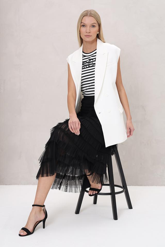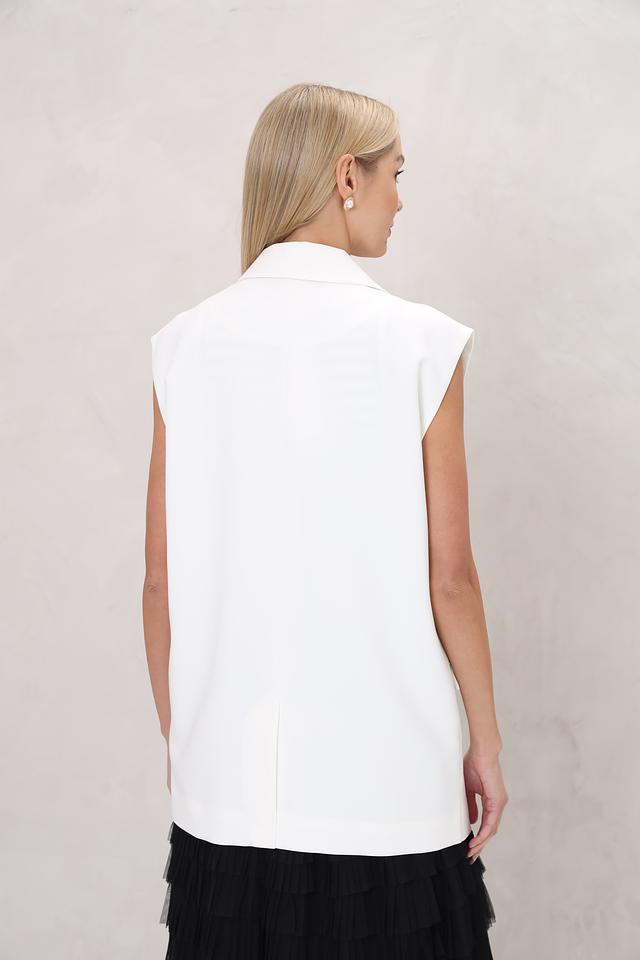 Этот жилет от UNQ станет отличным дополнением к вашему гардеробу. Выполненный в белом цвете, он легко сочетается с различными вещами, создавая стильные и современные образы.