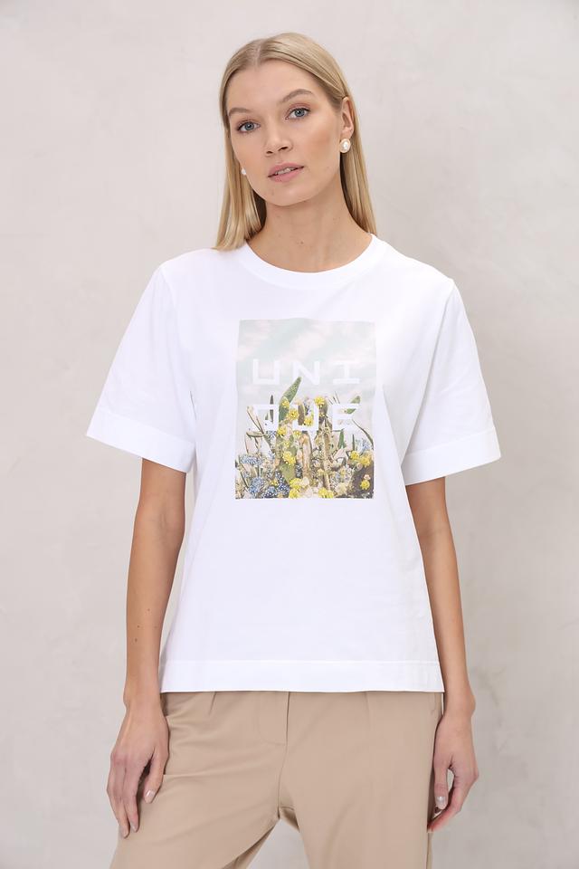 Белая футболка UNQ с ярким цветочным принтом – стильная и комфортная базовая вещь. Изготовлена из 100% хлопка, обеспечивающего приятные ощущения на коже и свободу движений. Состав: хлопок 100%