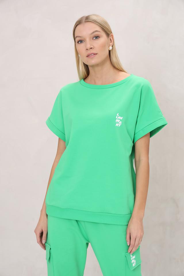 Женский пуловер UNQ лаймового цвета – это стильная и удобная модель с коротким рукавом и оригинальным логотипом. Изготовлен из мягкого хлопка с добавлением эластана для комфортной посадки и свободы движений. Состав: хлопок 95%, эластан 5%