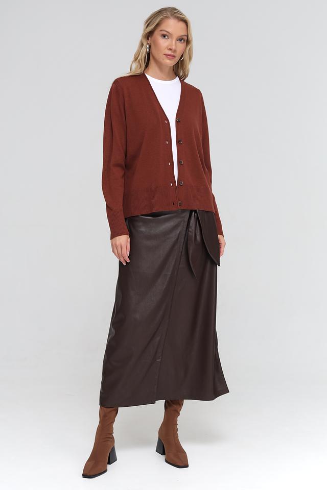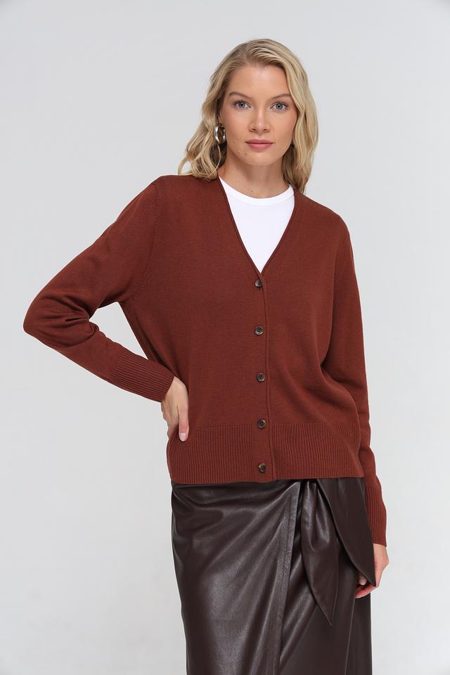 Жакет UNQ коричневого цвета – это стильная и удобная модель кардигана с V-образным вырезом и застёжкой на пуговицы. Изготовлен из мягкой смеси шерсти, кашемира и полиэстера, обеспечивающей комфорт и тепло. Состав: полиэстер 35%, полиакрил 30%, шерсть овечья 30%, кашемир 5%
