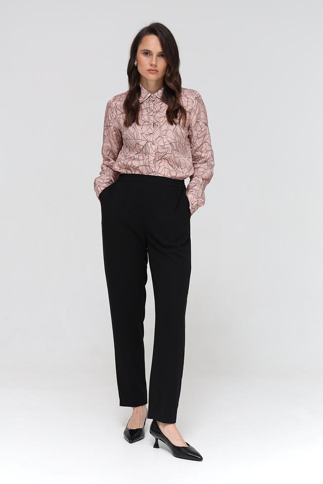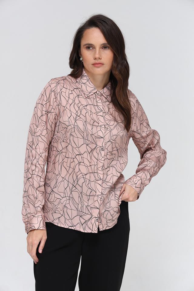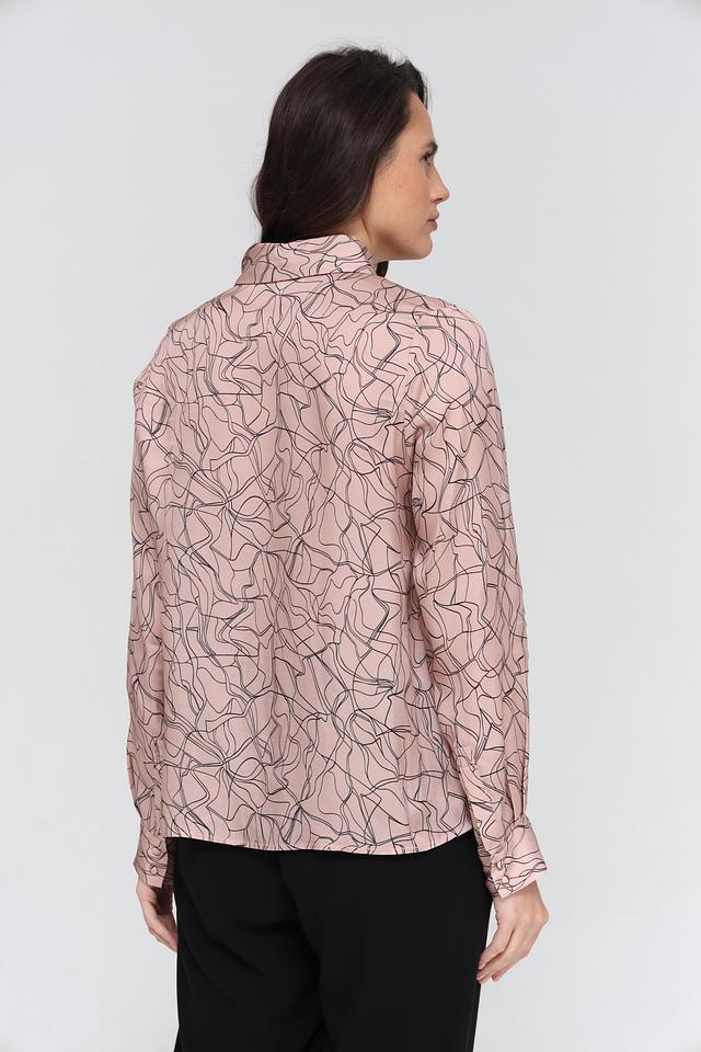 Блуза имеет классический крой с длинными рукавами и отложным воротником. Она идеально подходит для создания как повседневных, так и более элегантных образов.