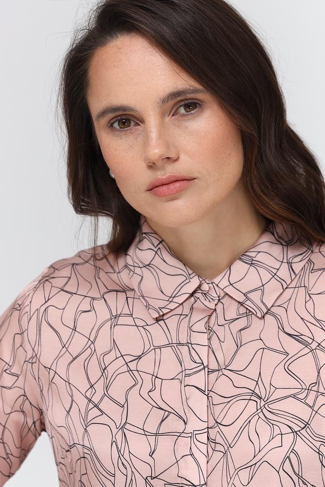 Блуза UNQ нежно-розового цвета с оригинальным принтом в виде ромбов станет стильным дополнением к вашему гардеробу. Изготовлена из 100% вискозы, обеспечивающей комфорт и лёгкость в носке. Состав: вискоза 100%