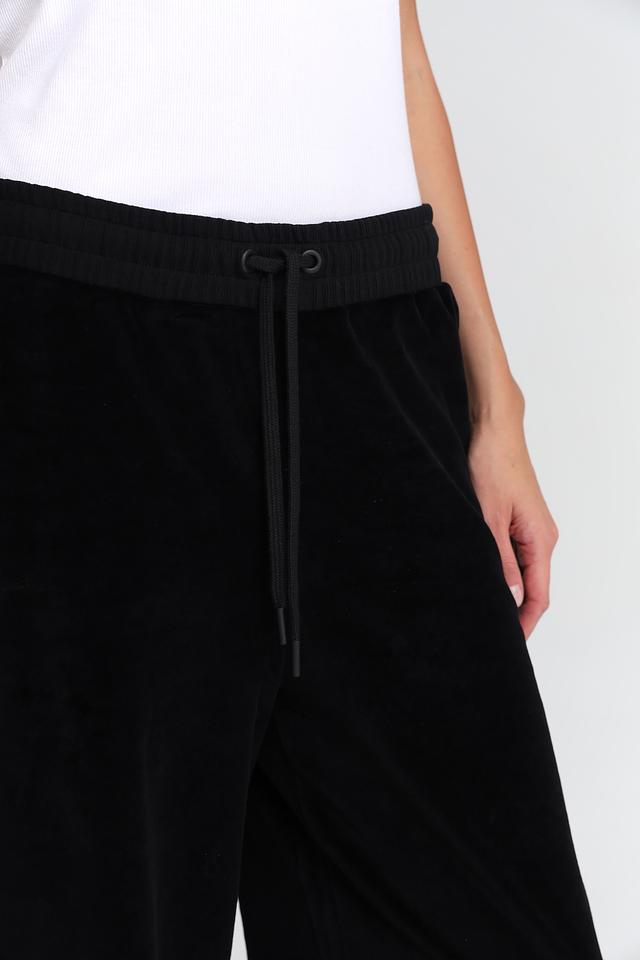 Брюки имеют прямой крой, который подходит для любой фигуры. Эластичный пояс с регулируемой кулиской обеспечивает надежную посадку и комфорт в течение всего дня. Классический чёрный цвет делает эти брюки универсальным элементом гардероба, который легко сочетается с различными верхами и обувью.