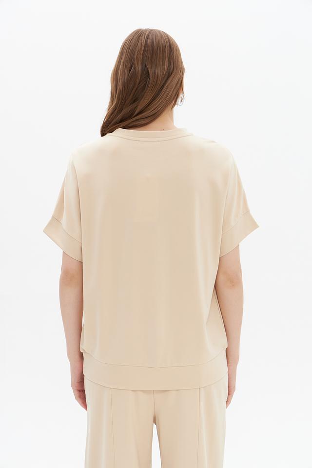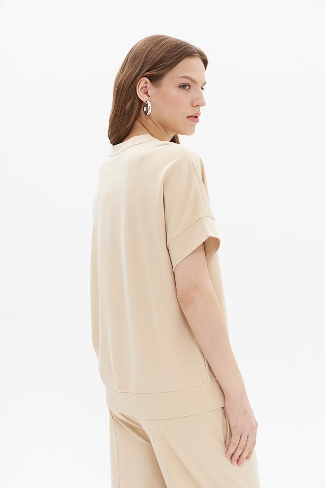 Бежевый пуловер от UNQ – это стильная и комфортная модель с коротким рукавом. Изготовлен из мягкой вискозы с добавлением полиамида и эластана, обеспечивающих приятные тактильные ощущения и хорошую посадку по фигуре. Состав: вискоза 60%, полиамид 35%, эластан 5%