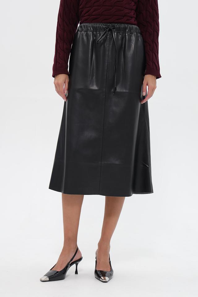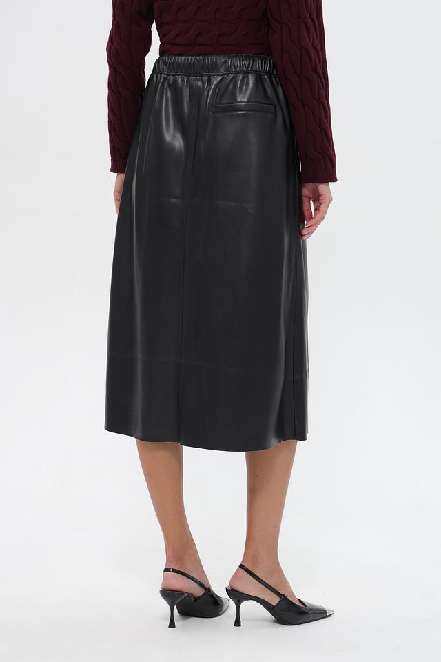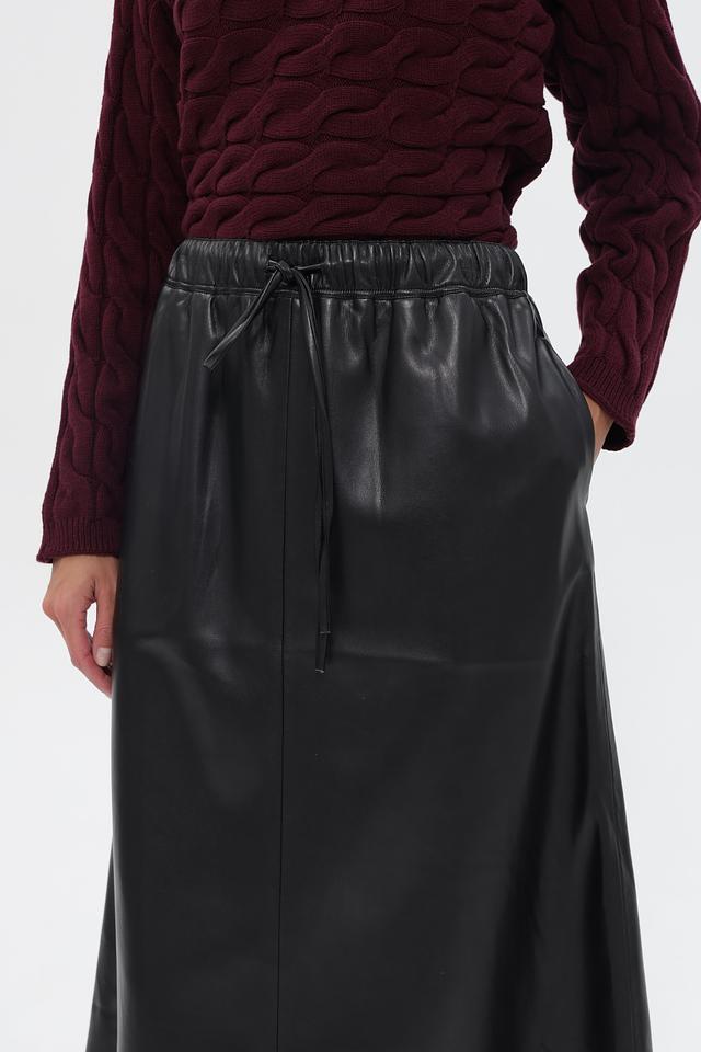Стильная юбка UNQ из экокожи чёрного цвета с эластичным поясом и завязками. Изготовлена из полиэстера и полиуретана, обеспечивающих комфорт и долговечность. Состав: полиэстер 55%, полиуретан 45%