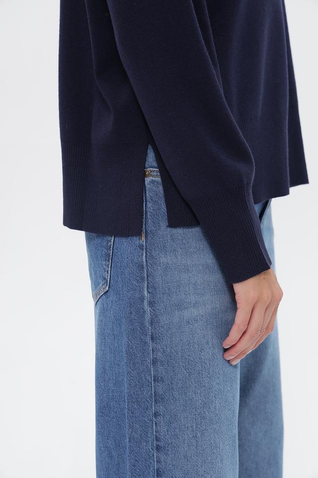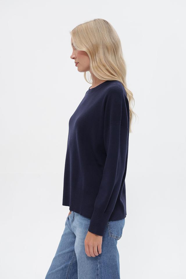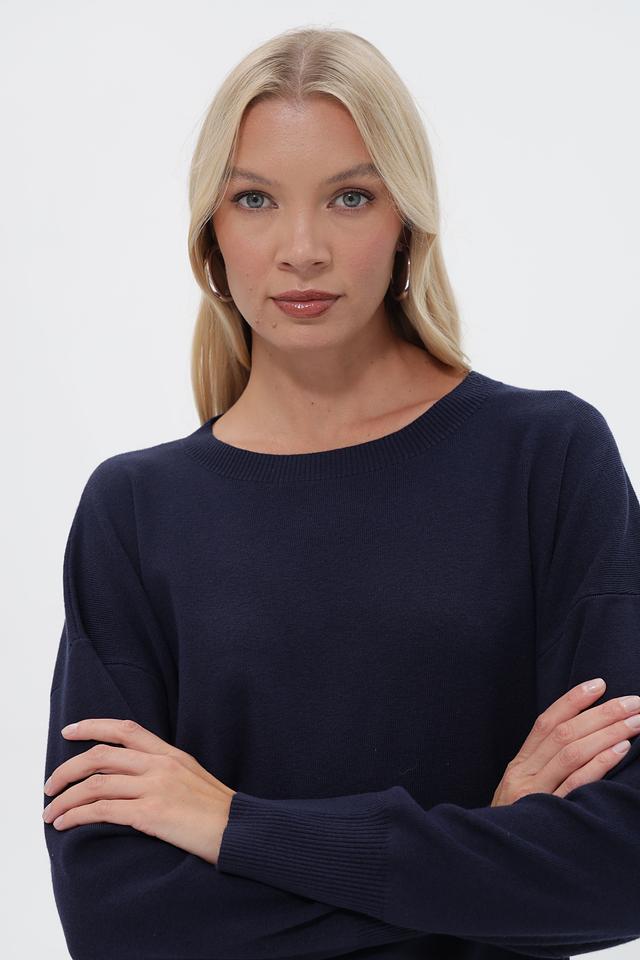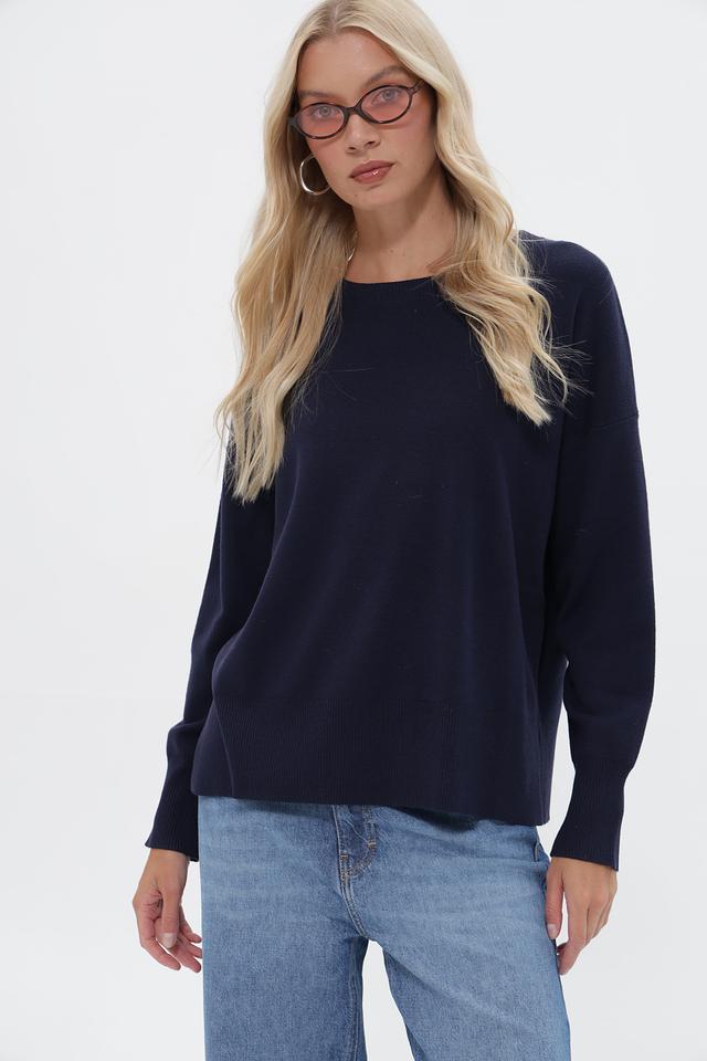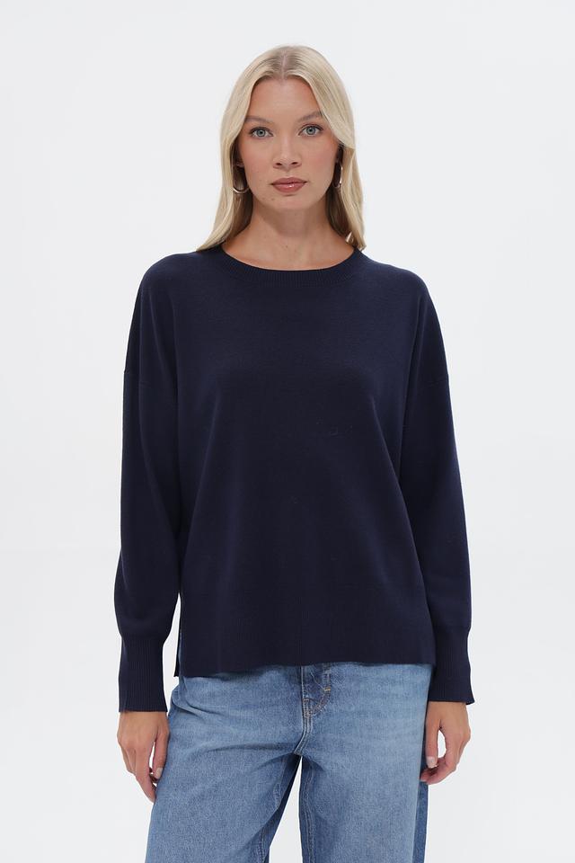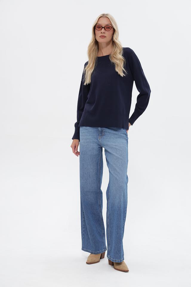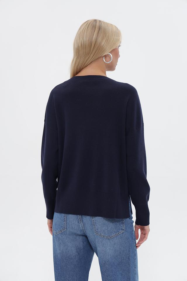 Этот тёмно-синий пуловер от UNQ станет незаменимой вещью в вашем гардеробе. Классический крой и спокойный цвет делают его универсальным для создания различных образов.