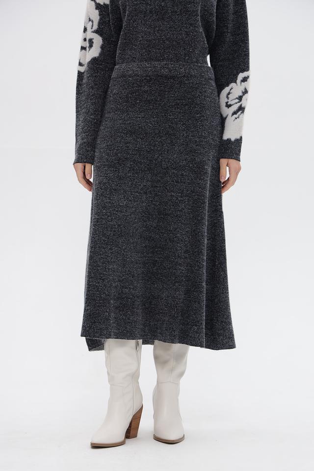 Представляем вязаную юбку от бренда UNQ. Модель выполнена в сером цвете с акцентным цветочным узором на рукавах. Юбка имеет длину миди и облегающий силуэт, подчеркивающий фигуру.