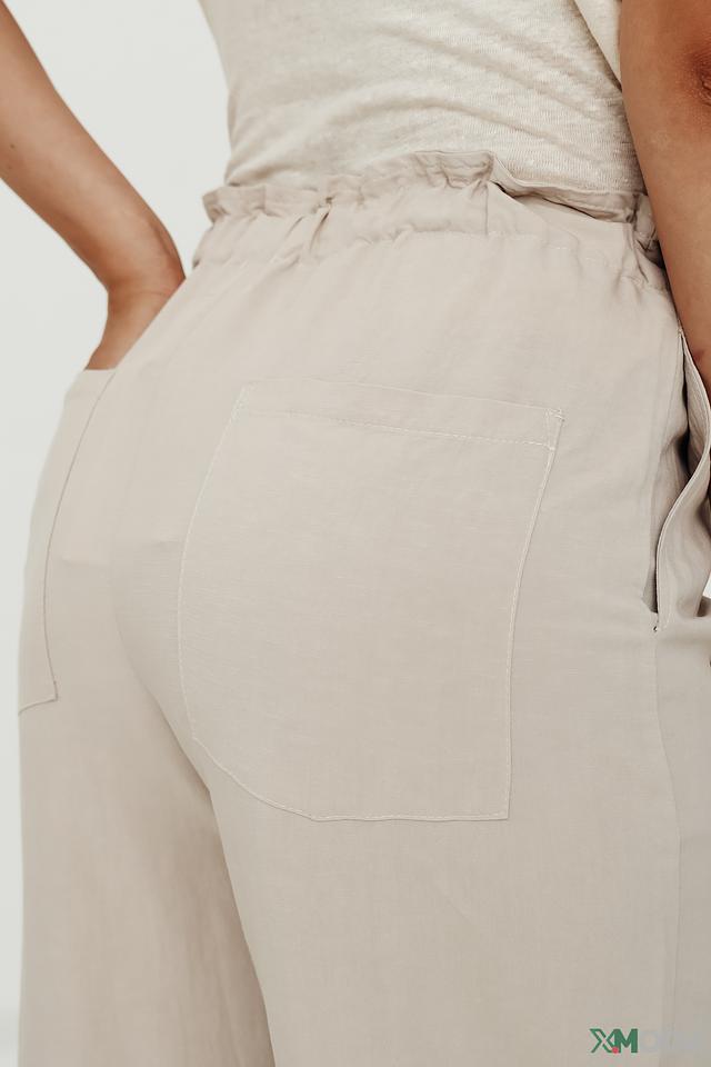 Бежевые брюки от UNQ — это стильное и комфортное решение для повседневного гардероба. Модель выполнена из лёгкой ткани на основе вискозы и льна, имеет удобный пояс на завязках и прямой крой. Состав: вискоза 60%, лен 40%