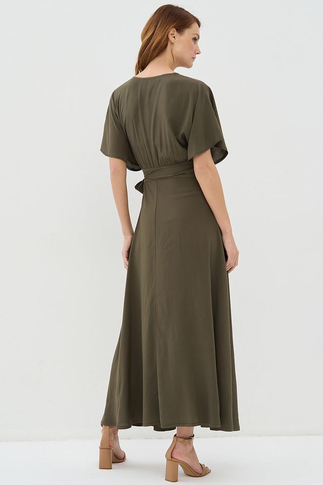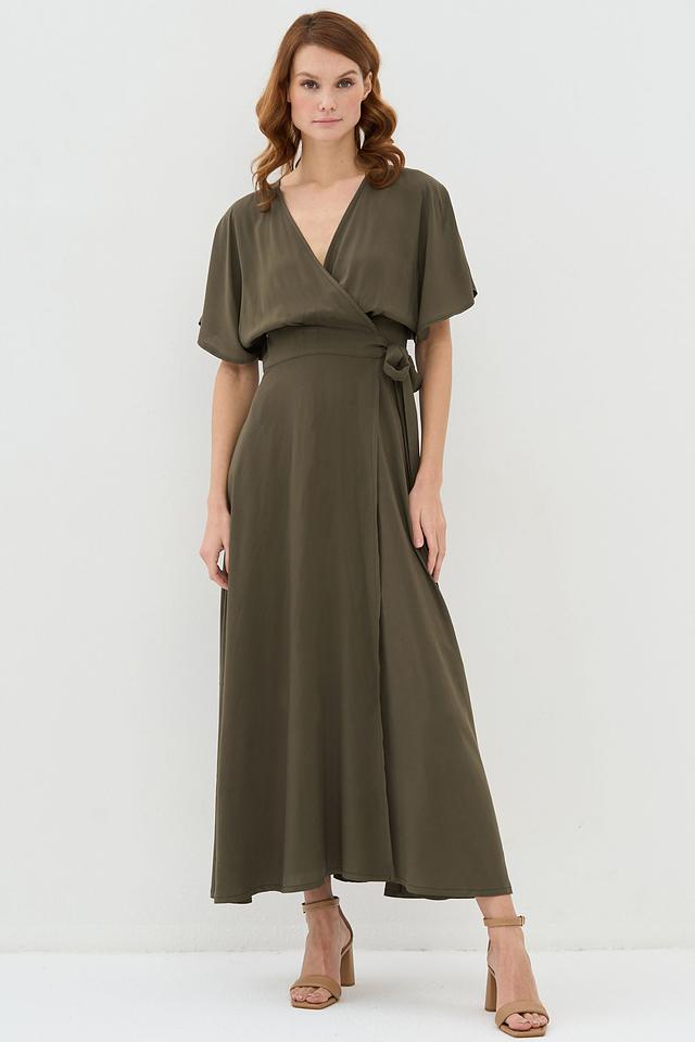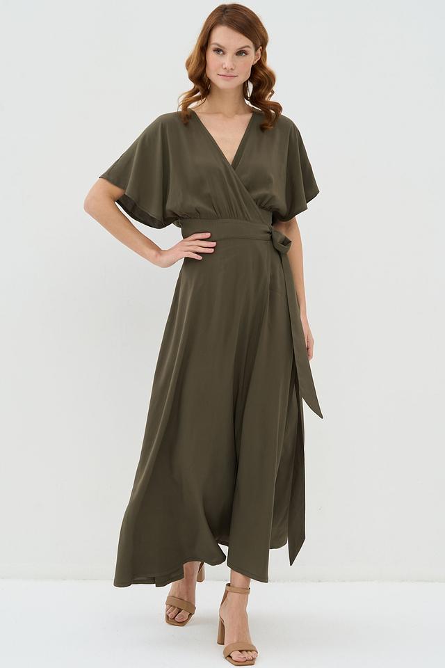 Платье VAY с запахом оливковое