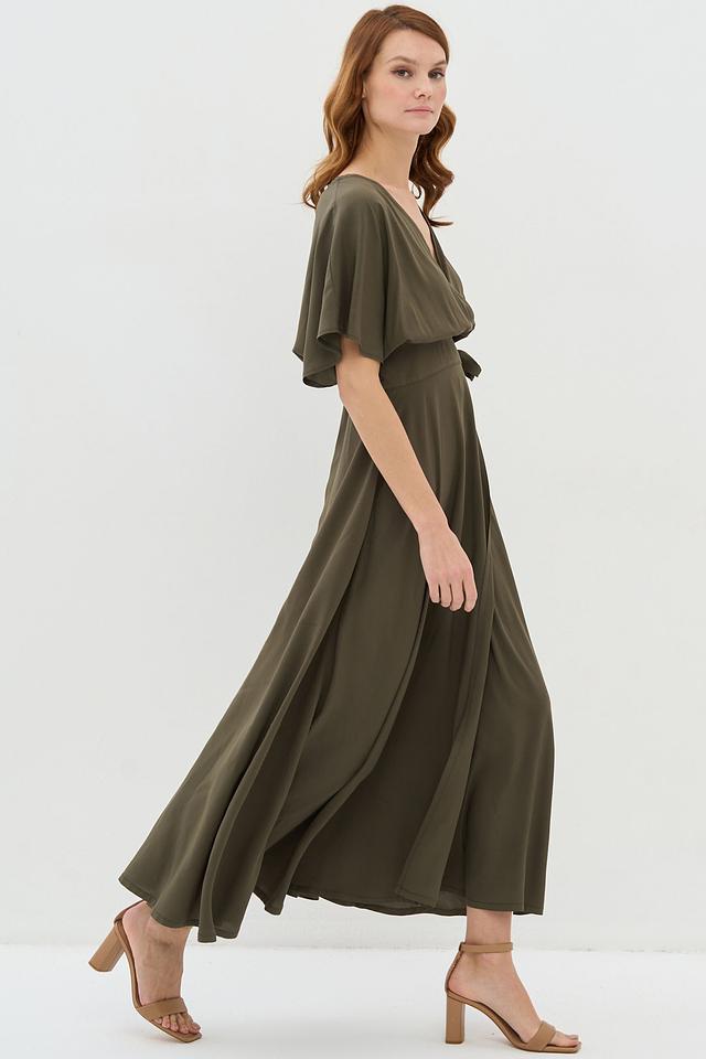 Это платье от бренда VAY выполнено из 100% вискозы, что делает его приятным к телу и комфортным в носке. Модель имеет длину макси и выполнена в нежном оливковом цвете.