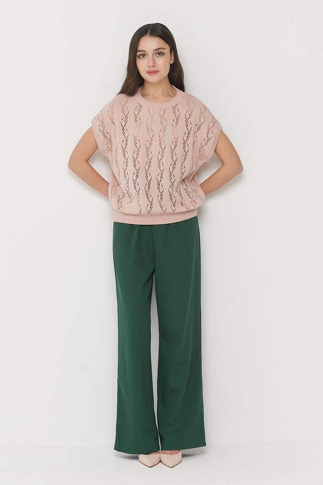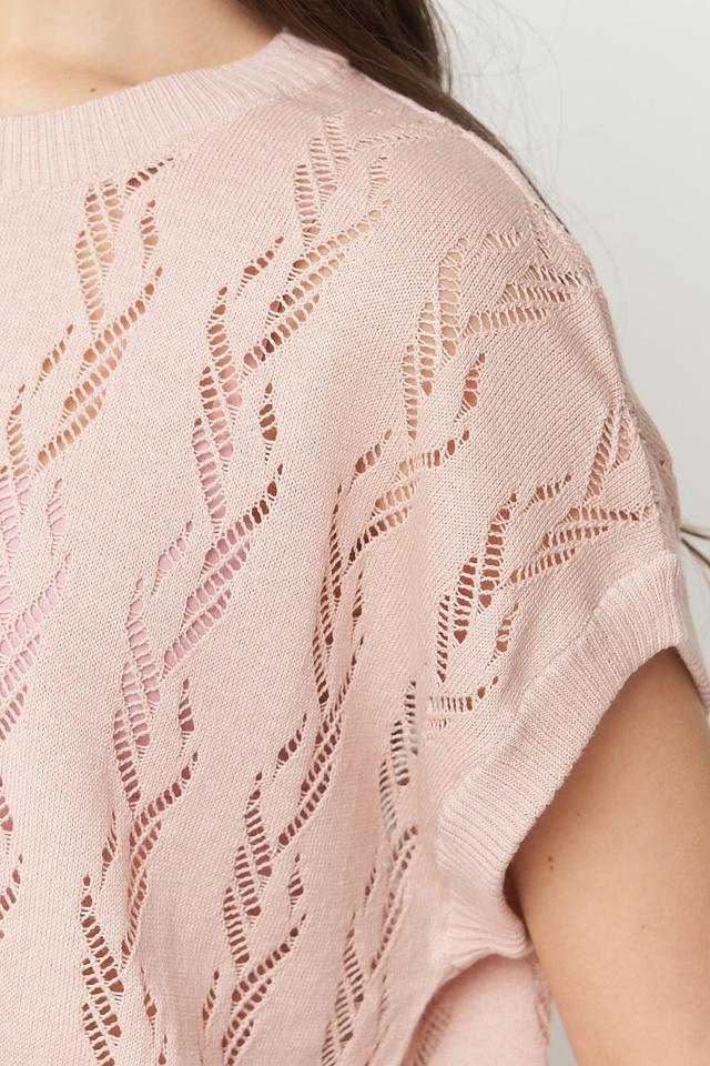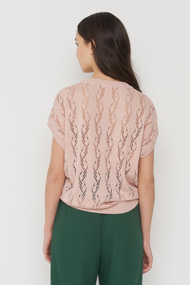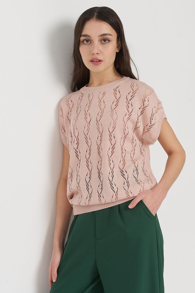 Бежевый джемпер от VAY с ажурной вязкой и короткими рукавами станет стильным дополнением к вашему гардеробу. Модель выполнена из мягкого и приятного к телу сочетания хлопка и пан. Состав: хлопок 50%, пан 50%