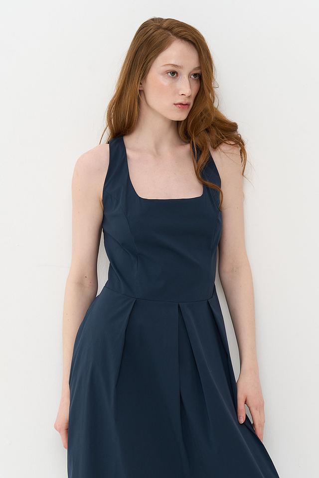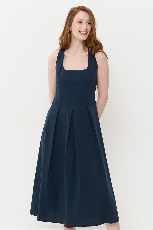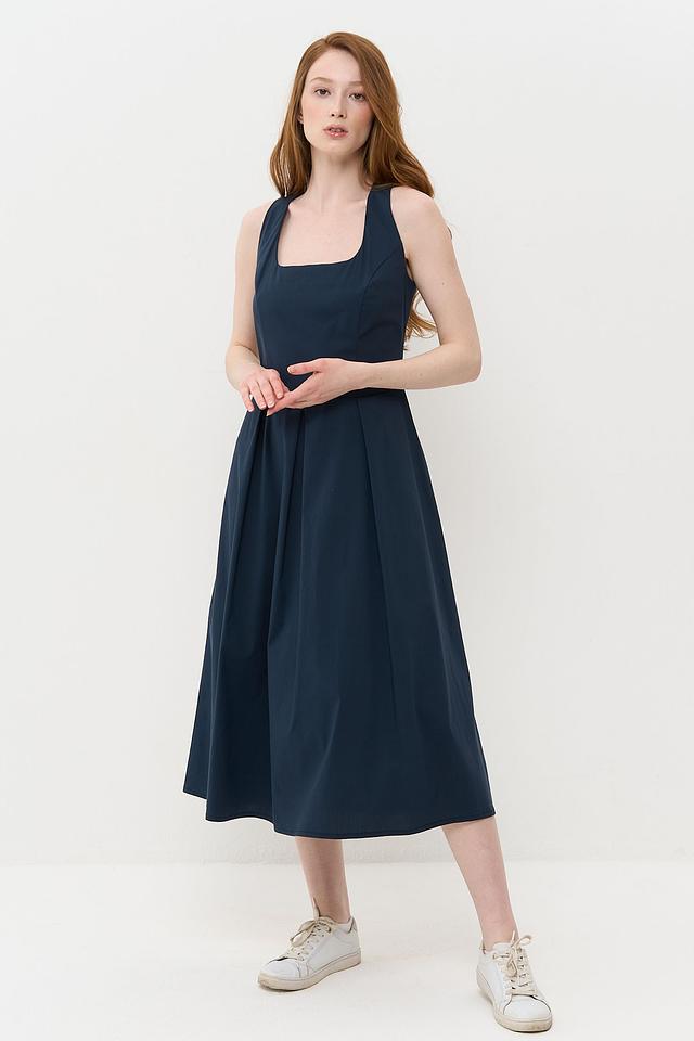 Синее платье от VAY – это стильное и комфортное решение для создания женственного образа. Платье имеет квадратный вырез горловины и длину миди, а также выполнено с плиссированной юбкой. Состав: