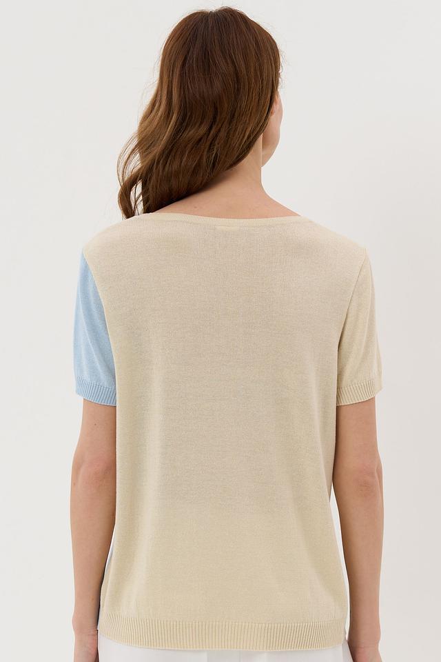Этот стильный джемпер от VAY станет прекрасным дополнением к вашему гардеробу. Изделие выполнено в сочетании бежевого и голубого цветов, что придает ему свежий и современный вид.