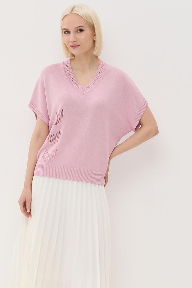 Розовый пуловер от VAY – это стильный и удобный выбор для создания модных образов. Модель имеет V-образный вырез и деликатное вязание с декоративными элементами в виде вырезанных сердечек. Состав: