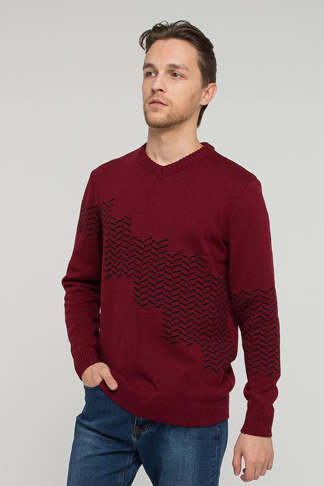 Мужской джемпер VAY бордового цвета с геометрическим узором. Изготовлен из мягкой смеси хлопка и шерсти, обеспечивающей комфорт и тепло. Идеально подходит для создания стильного повседневного образа. Состав: пан 70%, шерсть 30%
