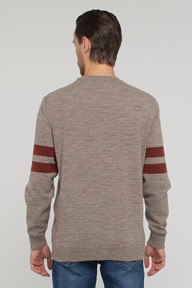 Джемпер имеет полосатую отделку в коричневом цвете на рукавах, что добавляет ему выразительности. Изготовлен из высококачественного сочетания 70% хлопка и 30% шерсти, что обеспечивает мягкость, тепло и комфорт при носке.
