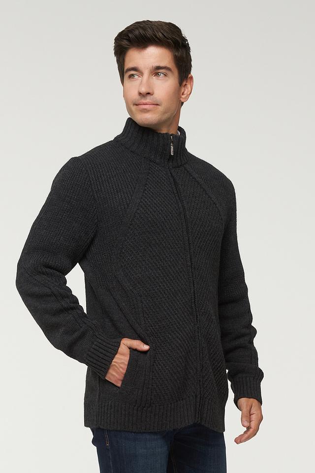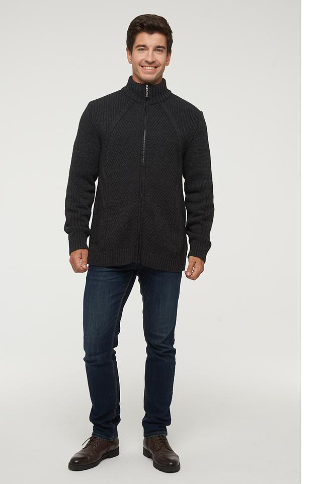 Мужской кардиган VAY графитового цвета на молнии с выразительной текстурой плетения. Модель выполнена из сочетания шерсти и акрила, что обеспечивает комфорт и тепло. Идеальный выбор для создания стильного и уютного образа. Состав: пан 70%, шерсть 30%