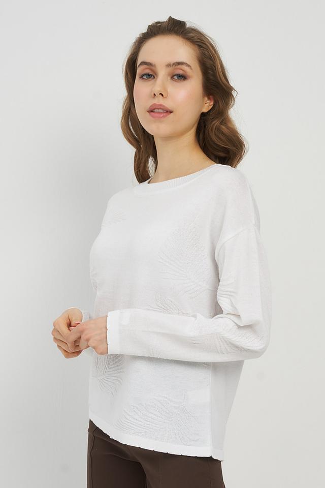 Белый джемпер от VAY с оригинальным принтом в виде листьев станет отличным дополнением к вашему гардеробу. Изготовлен из мягкого и приятного к телу сочетания хлопка и пан. Состав: хлопок 50%, пан 50%