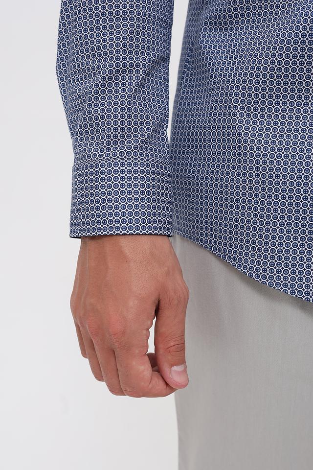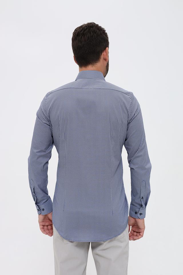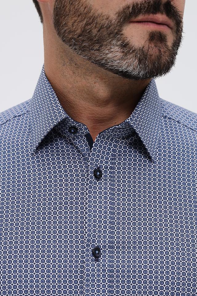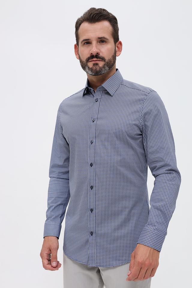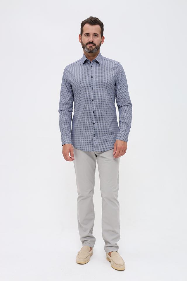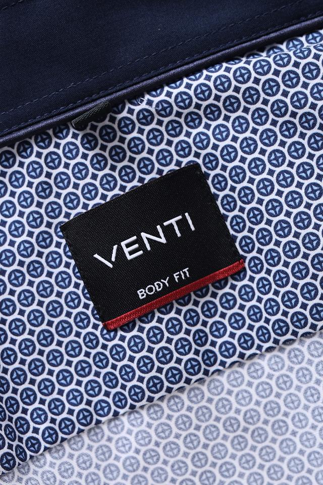 Мужская рубашка Venti синего цвета с мелким геометрическим рисунком. Классический крой и длинный рукав делают эту рубашку универсальным элементом гардероба. Изготовлена из хлопка с добавлением эластана для комфорта. Состав: хлопок 97%, эластан 3%