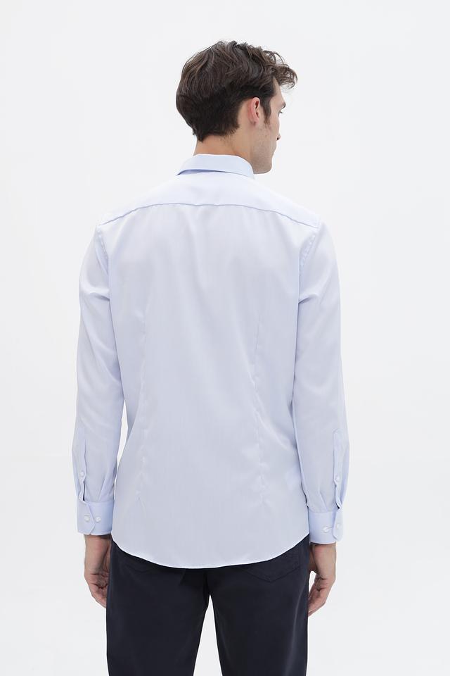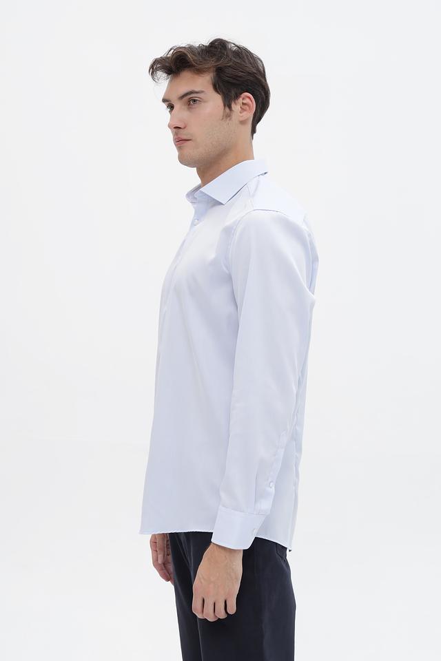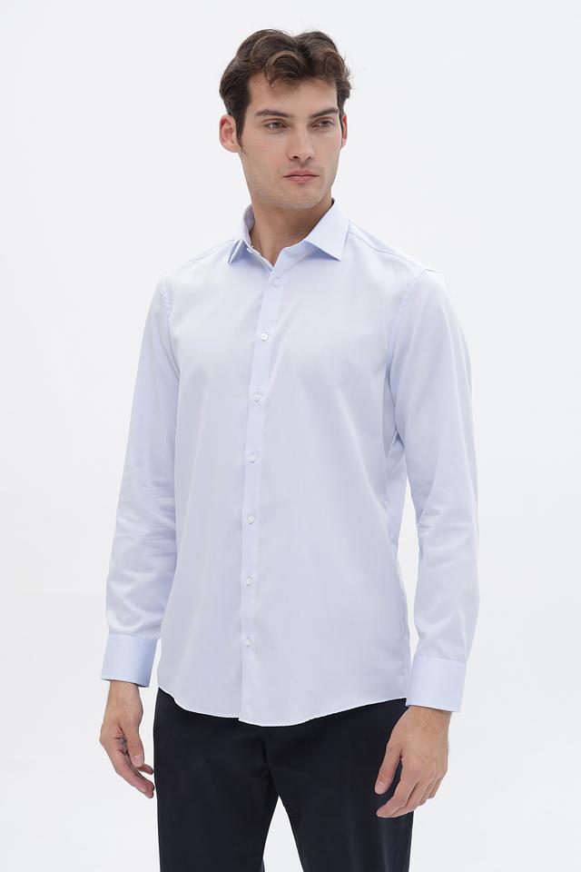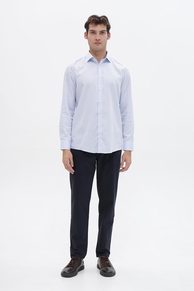 Рубашка имеет классический крой с длинными рукавами и приталенный силуэт, который подчеркивает фигуру. Застежка на пуговицы по всей длине обеспечивает удобство надевания и снятия. Воротник рубашки выполнен в классическом стиле.