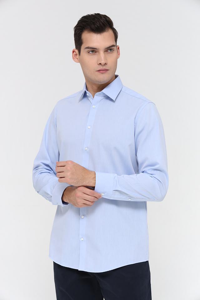 На фотографии видно, что рубашка имеет аккуратные швы и качественную фурнитуру. Застежка на пуговицах, манжеты на пуговицах. Модель Modern Fit обеспечивает удобную посадку по фигуре.