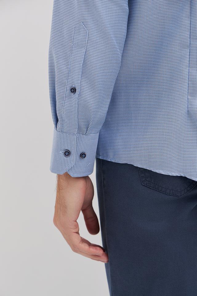Мужская рубашка Venti голубого цвета с мелким геометрическим рисунком. Изготовлена из 100% хлопка, обеспечивающего комфорт и воздухопроницаемость. Состав: хлопок 100%