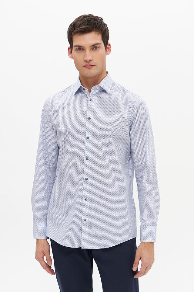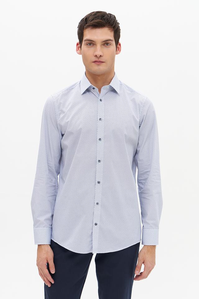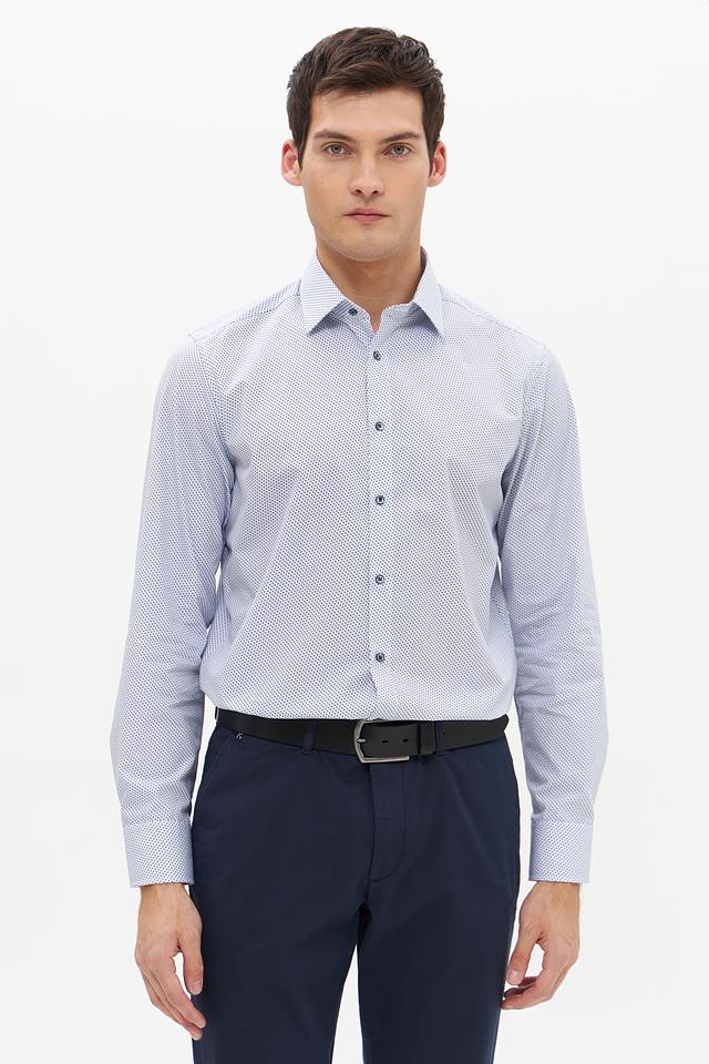 Мужская рубашка Venti голубого цвета с мелким геометрическим принтом. Изготовлена из 100% хлопка, обеспечивающего комфорт и воздухопроницаемость. Состав: хлопок 100%