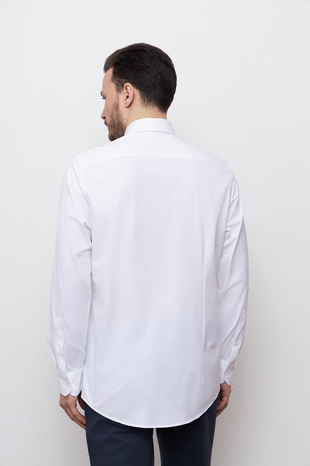 Рубашка имеет стандартную воротничковую стойку и застежку на пуговицы. Длинные рукава с манжетами на пуговицах позволяют регулировать посадку. Прямой низ рубашки обеспечивает удобство при ношении как заправленной, так и навыпуск.