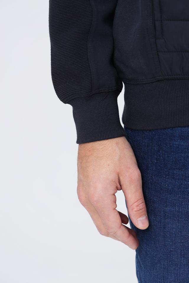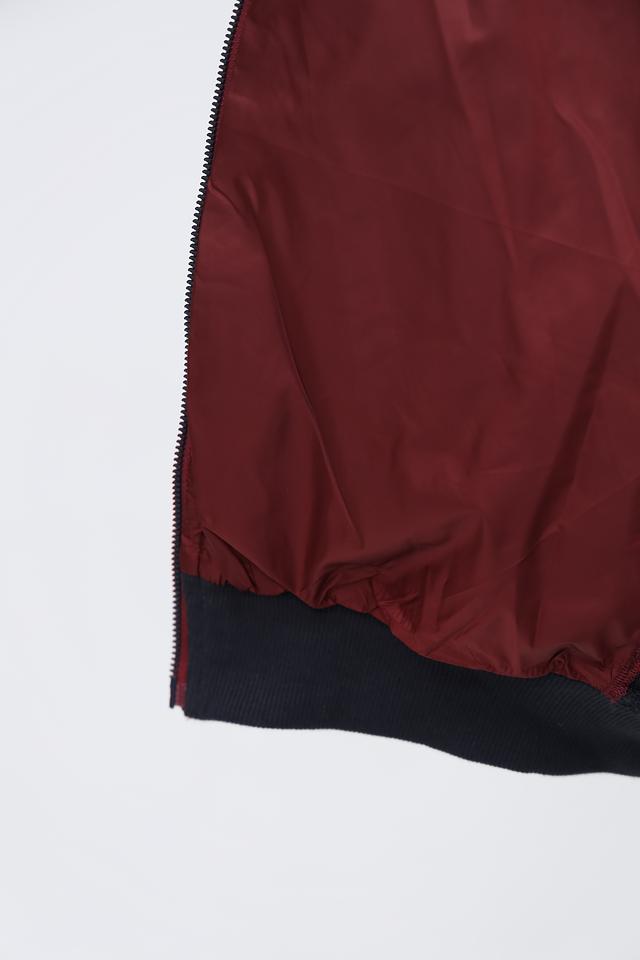 Рукава ветровки выполнены из гладкой ткани, контрастирующей с основной стеганой частью. На левом рукаве расположен декоративный карман на молнии с красной окантовкой. Модель имеет два боковых кармана для удобного хранения мелочей. Состав: хлопок 95%, эластан 5%.