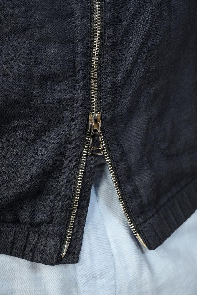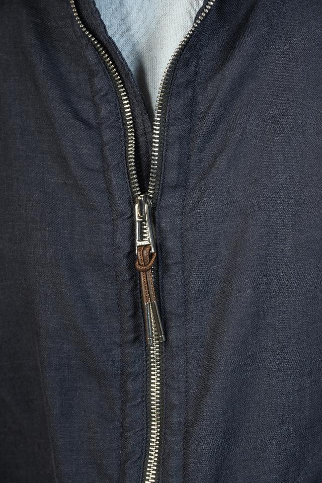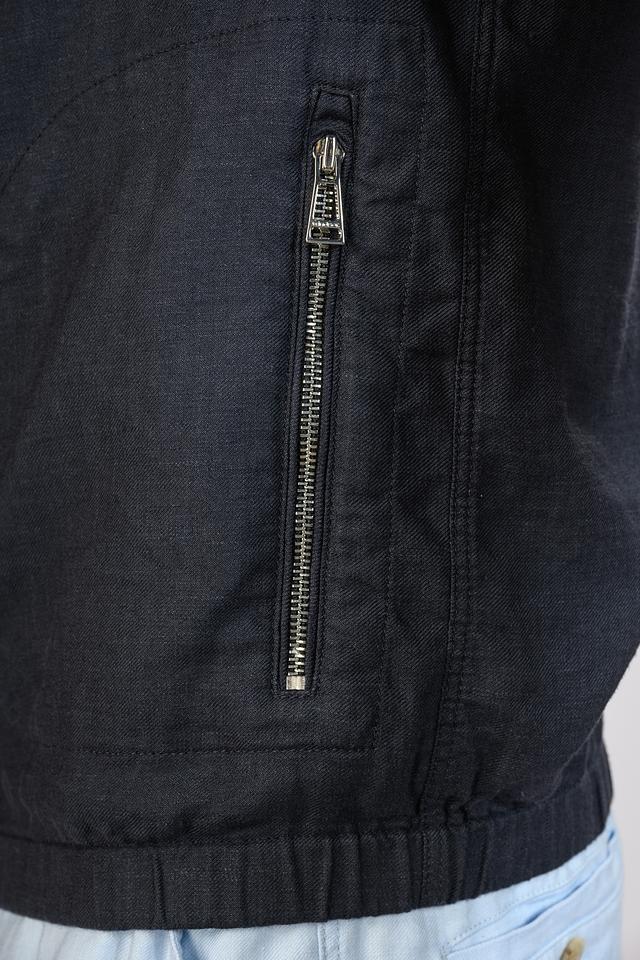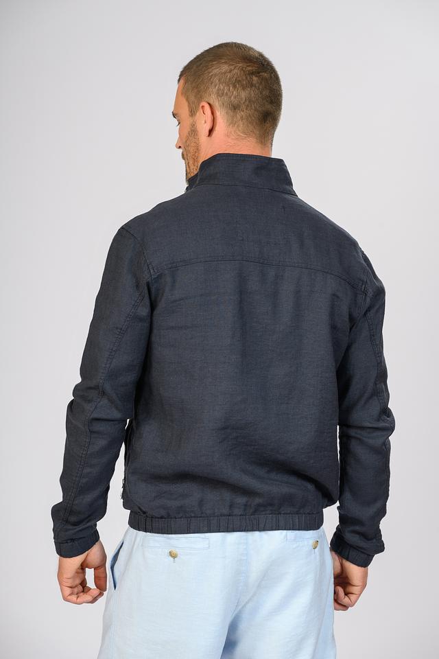 Мужская ветровка Windsor темно-синего цвета выполнена из натурального льна с добавлением вискозы и эластана. Модель застегивается на молнию, имеет воротник-стойку и боковые карманы. Состав: лен 58%, луоселл 39%, эластан 3%