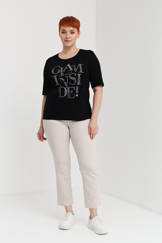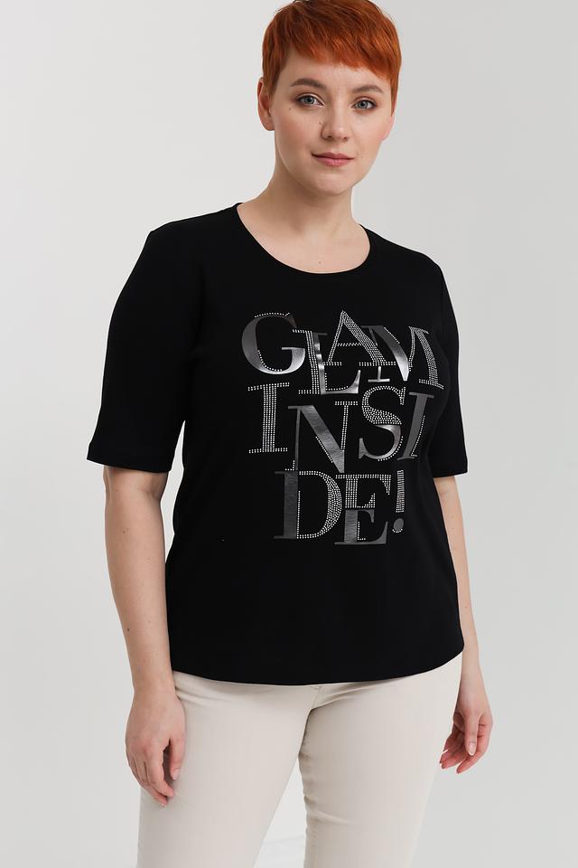 Чёрная футболка Via Appia с эффектным принтом "GLAM INSIDE!" станет стильным дополнением к вашему гардеробу. Изготовлена из 100% хлопка, обеспечивая комфорт и удобство в носке. Состав: хлопок 100%