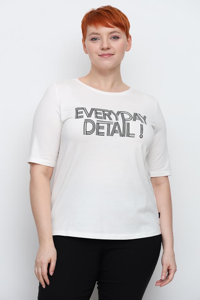 Модель имеет прямой крой и короткие рукава, что обеспечивает свободу движений и комфорт в жаркую погоду. Футболка украшена стильным черным принтом с надписью "EVERYDAY DETAIL!".