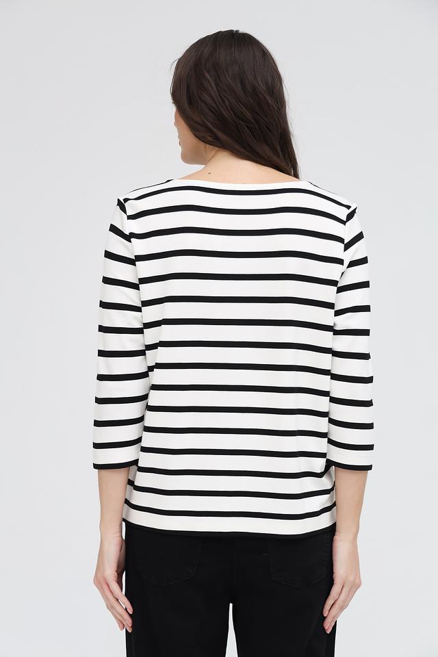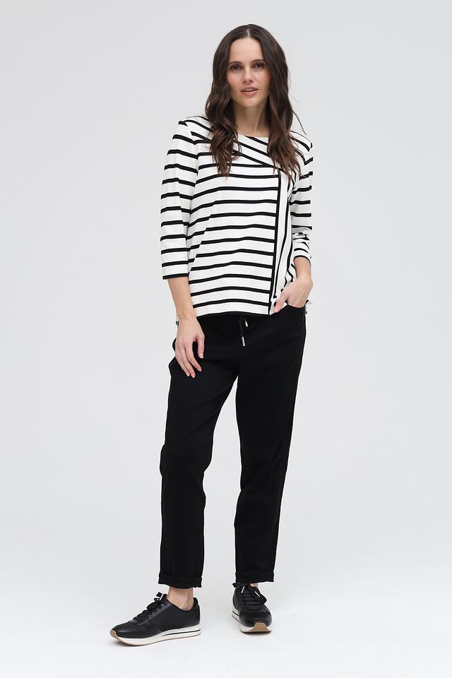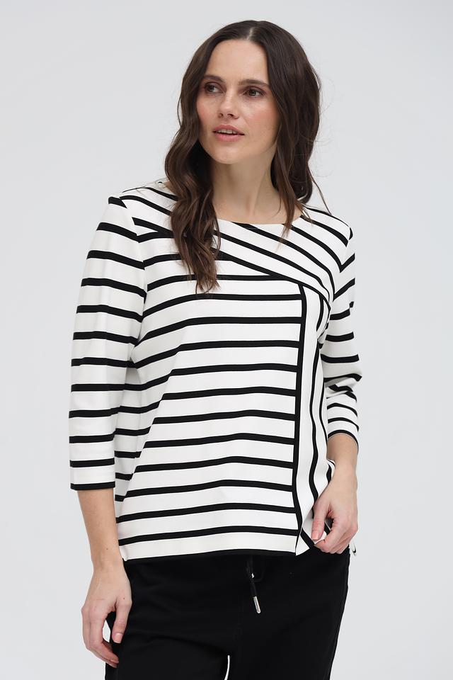 Эта стильная блуза от Via Appia станет отличным дополнением к вашему гардеробу. Она выполнена в классическом чёрно-белом сочетании полос, создавая эффектный и универсальный образ.