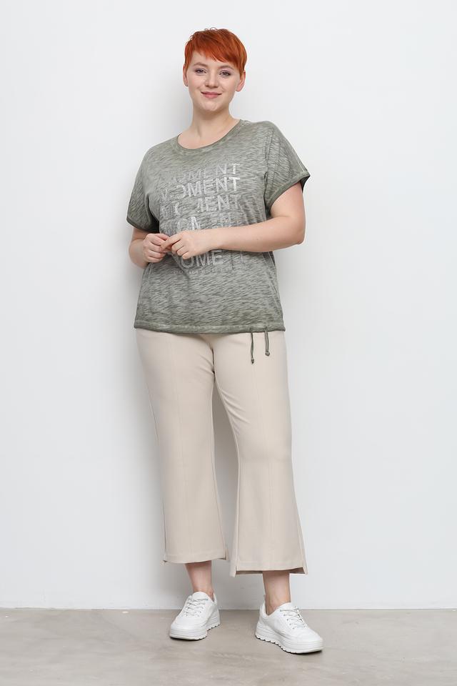 Женская футболка Via Appia хаки цвета с надписью "MOMENT" — это стильное и комфортное решение для повседневного образа. Футболка выполнена из мягкого хлопка с добавлением вискозы, что обеспечивает приятные ощущения при носке и хорошую посадку по фигуре. Состав: хлопок 52%, вискоза 48%